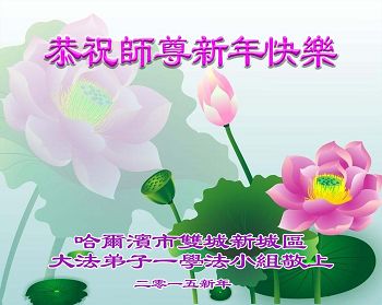 哈市新阳路一学法小组全体大法弟子恭祝师尊二零一五年元旦愉快!