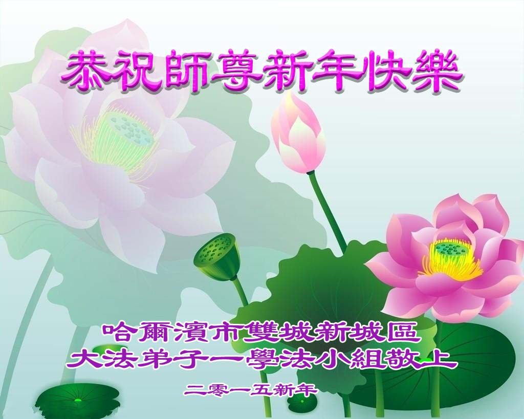 师父您辛苦了!弟子们祝您二零一五年元旦愉快! 哈市新阳路一学法小组全体大法弟子叩拜! 黑龙江省哈尔滨建工大法弟子祝师尊元旦快乐!
