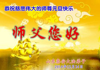 山东泰安大法弟子恭祝慈悲伟大的师尊元旦快乐!