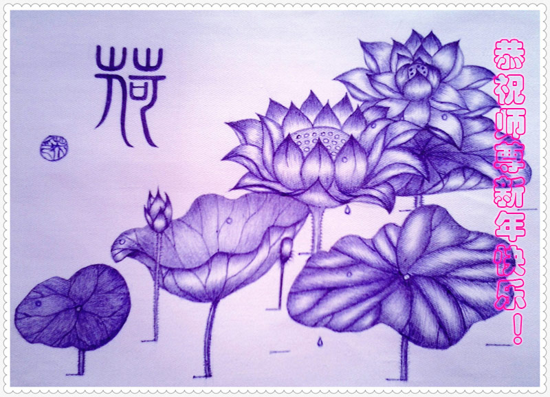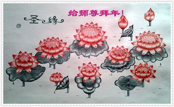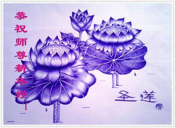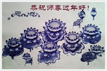这是一位佳木斯女大法弟子用油笔在白布上一笔笔勾画而成。在新年即将到来之际,祝师父新年快乐! 黑龙江佳木斯地区一大法弟子恭祝师尊新年快乐!