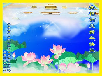 我是河北沧州的一名大法弟子,在大法修炼过程中,顽疾逐渐治愈,身心健康,晦暗的性情逐渐转好,家庭变的和睦,非常感谢师父,感谢法轮大法! 在中国甲午年新春佳节到来之际,最衷心的祝愿伟大的师尊新年快乐! 相信在未来的日子里,师尊能够带领全世界的大法弟子,创造更大的辉煌!