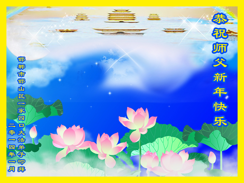 五常市全体大法弟子叩拜恩师 二零一四年一月二十六日 河北邯郸市邯山区一家四口恭祝慈悲伟大的师尊新年快乐!