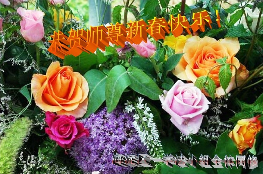 师尊您辛苦啦! 恭祝慈悲伟大的师尊新年快乐!师尊您辛苦啦!每逢佳节倍思亲 叩拜师尊表寸心 新老弟子是一体 抓紧救人是本份 精進实修向内找 救满人数愿师笑 北京海淀区一学法小组大法弟子恭贺师尊新年快乐!