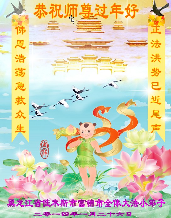【明慧网二零一四年二月一日】 黑龙江省哈尔滨市道外区大法弟子恭祝师尊过年好!