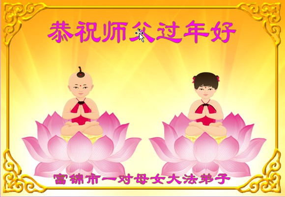 弟子们想念您!感谢师尊这些年来对我们一家人的救度与慈悲呵护,用世间任何的语言都无法表达对师父的感激之情,弟子们唯有在新的一年里,更加精進,不断做好三件事,救度更多的众生,让师父多一份欣慰。 另附一对联恭祝新年,希望众生都能明真相得救。 上联:春回大地家喻户晓真善忍 下联:万物更新大法洪传又一年 横批:法轮大法好 黑龙江省佳木斯市富锦市全体大法弟子给师父拜年!恭祝师尊过年好!