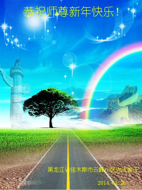 尊敬的师父,您辛苦了!盼望师父早日回到中国大陆! 黑龙江省佳木斯大法弟子恭祝师尊新年快乐!
