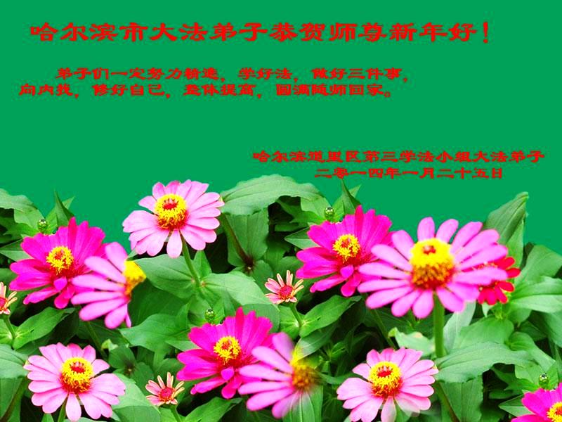 黑龙江省哈尔滨道里区一学法小组大法弟子恭贺师尊新年好!