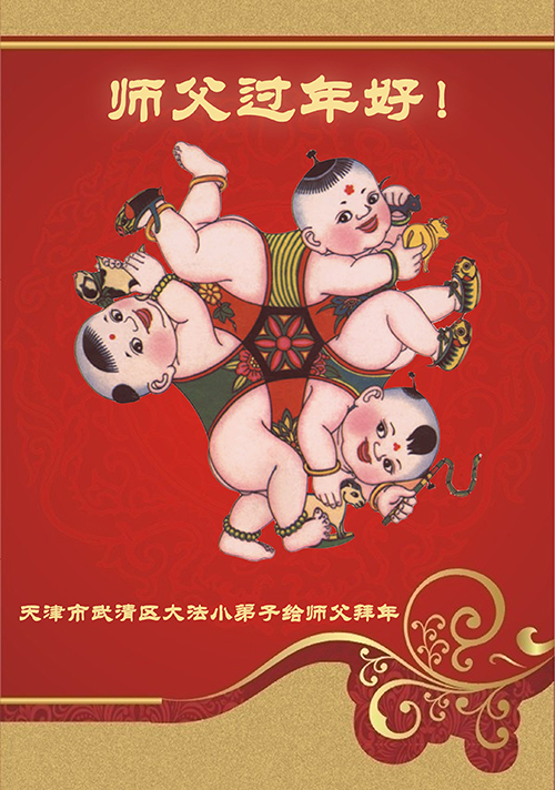 转眼间,值千金、值万金的正法时光又过去了一年。值此新春佳节,逊克县大法小弟子师尊问好! 弟子一定会更加精進,更加严格要求自己;多学法,修去为私为我,以更大的慈悲,更大的容量,更加宽大的胸怀救度更多的众生,证实好法,展现出正法时期大法弟子最伟大、最了不起、最纯正的一面;破除解体邪恶的迫害;无愧于千载难逢的修炼机缘,无愧于稍纵即逝的正法时光,了却洪誓大愿。合十! 二零一四年一月十九日 黑龙江七台河新兴区十一岁大法小弟子向师尊拜年!祝伟大师尊新年快乐!