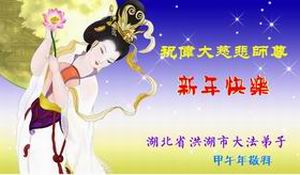 师父啊转眼又到甲午年新年了,弟子在此谨代表湖北荆州市石首市全体大法弟子给您拜年!师父您辛苦了!祝愿慈悲伟大的师父新年快乐! 武汉山东省莱芜大法弟子恭祝师父新年好!