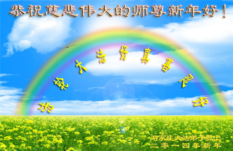 【明慧网二零一四年二月一日】 河北省石家庄市裕华区一学法小组及家人祝慈悲伟大的师尊新年快乐!