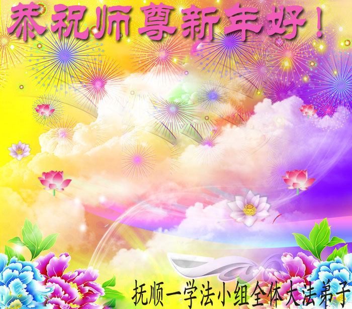 师尊,弟子想念您!弟子有很多人心和执着没有去掉,三件事做的也不是很好,真是愧对师尊的慈悲苦度。在新的一年里,弟子要以法为师,向内修好自己,努力做好三件事,跟师尊回家! 辽宁省抚顺市一学法小组大法弟子恭祝师尊过年好!