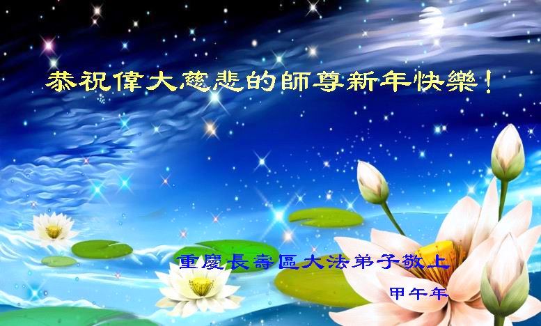 重庆长寿区大法弟子恭祝慈悲伟大的师尊新年快乐!