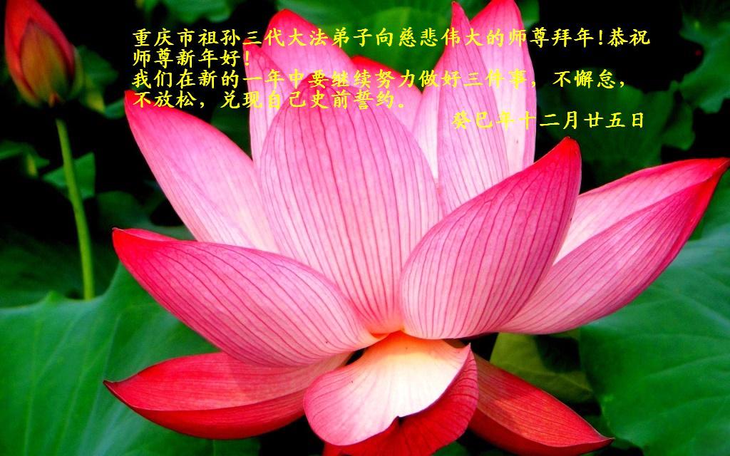 在新年到来之际。我们一定更加精進,兑现我们史前的誓约,做好三件事,圆满随师还。师父辛苦了。 重庆九龙坡区一大法弟子恭祝慈悲伟大的师尊新年好!