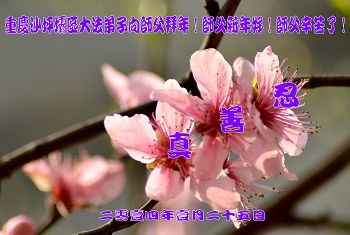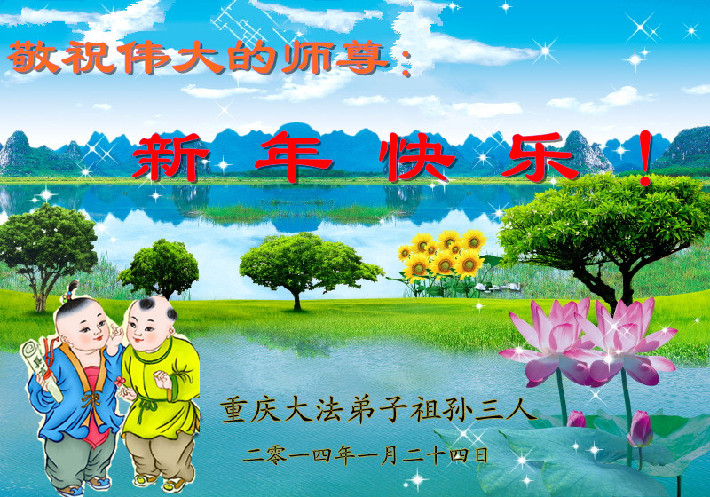 师父新年快乐! 2014年1月25日 重庆江北大法弟子祝师尊新年快乐!