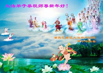 弟子非常想念师父,感恩的心无法用语言表达,唯有修去执着,勇猛精進。弟子叩拜师尊! 重庆市巴南区全体大法弟子恭祝师尊新年好!