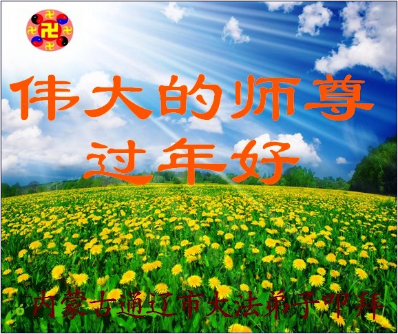 新年到 弟子问候师尊过年好 勇猛精進去执着 救人数满 唯愿师尊笑 内蒙古全体蒙古族大法弟子恭祝师父过年好!