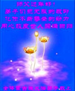 正法又一年,天地万象新。 师父您好!师父过年好! 感恩师父慈悲度,弟子勇猛精進报师恩。 弟子新年添正念,不惧辛苦不懈怠,兑现誓约圆满归。 元宝山区全体大法弟子恭祝师父过年好! 2014年1月22日敬上 内蒙古赤峰市阿旗大法弟子恭祝师尊新年好!
