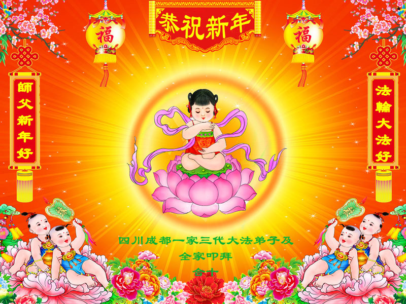四川成都一家三代大法弟子及全家恭祝师父新年好!