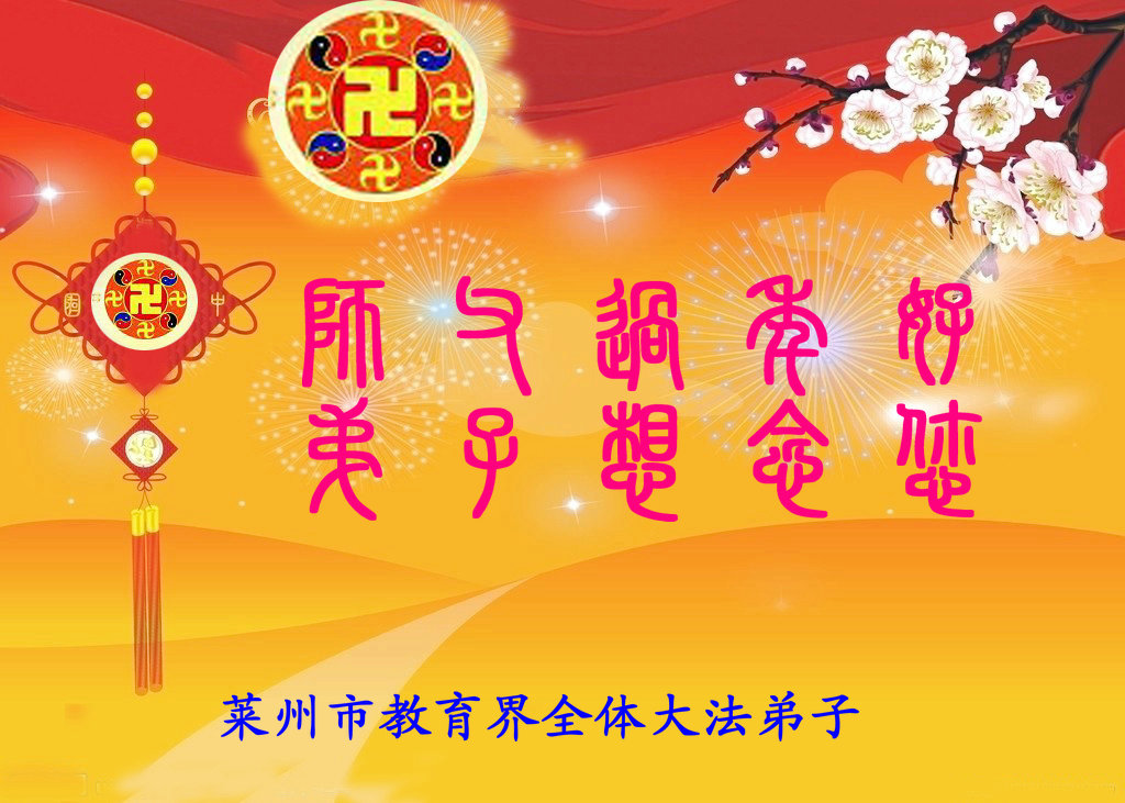 又是一年,在这过去的一年中亲身见证了佛恩浩荡,感恩的心化成了救度众生的力量,再难也要坚持,坚持,再坚持。 在此,莱州教育界大法弟子向慈悲伟大的师尊道一声:师父,过年好!在新的一年弟子们会做的更好。 吉林省松原市全体大法弟子给师尊拜年了,恭祝慈悲伟大的师尊新年快乐!