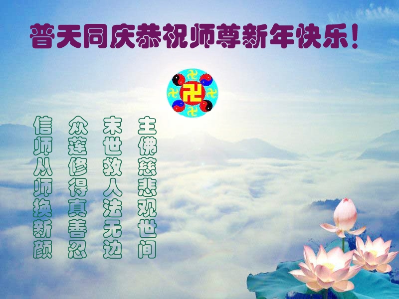 在这新年到来的时候,辽宁大法弟子祝师父过年好,弟子给您拜年了,谢谢师父。 辽宁抚顺一老年大法弟子及家中有缘众生恭祝慈悲伟大的师父新年快乐!