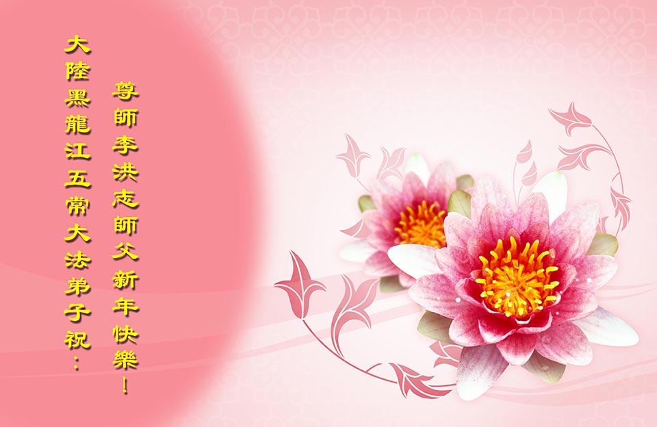 辽宁抚顺地区四个学法组全体大法弟子及家中所有有缘众生跪拜叩首给师尊拜年!恭祝师尊新年快乐!我们渴望师尊早日回国与弟子团聚! 众生感恩师尊佛恩浩荡!感恩法轮大法的救度与福泽!我们全体大法弟子决心将献给师尊的“元旦贺词”作为精進、再精進的标准,让师尊多一份欣慰,少一分承受与付出。 黑龙江省哈尔滨市五常市大法弟子恭祝慈悲伟大的师父新年快乐!