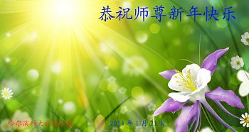 新年到了,我们学法小组全体大法弟子恭祝师尊新年快乐,在新的一年里,我们一定做好三件事,尽最大努力完成自己的使命,和师尊回家。叩拜师尊。 2014年1月18日 辽宁省抚顺市一大法弟子恭祝师尊新年快乐