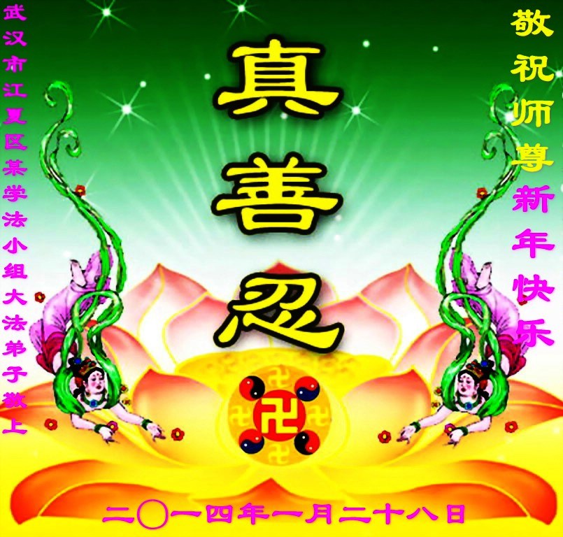 师尊您辛苦了!弟子们非常想念您,感谢师尊的救度之恩。 湖北武汉一大法弟子恭祝慈悲伟大的师父新年快乐!