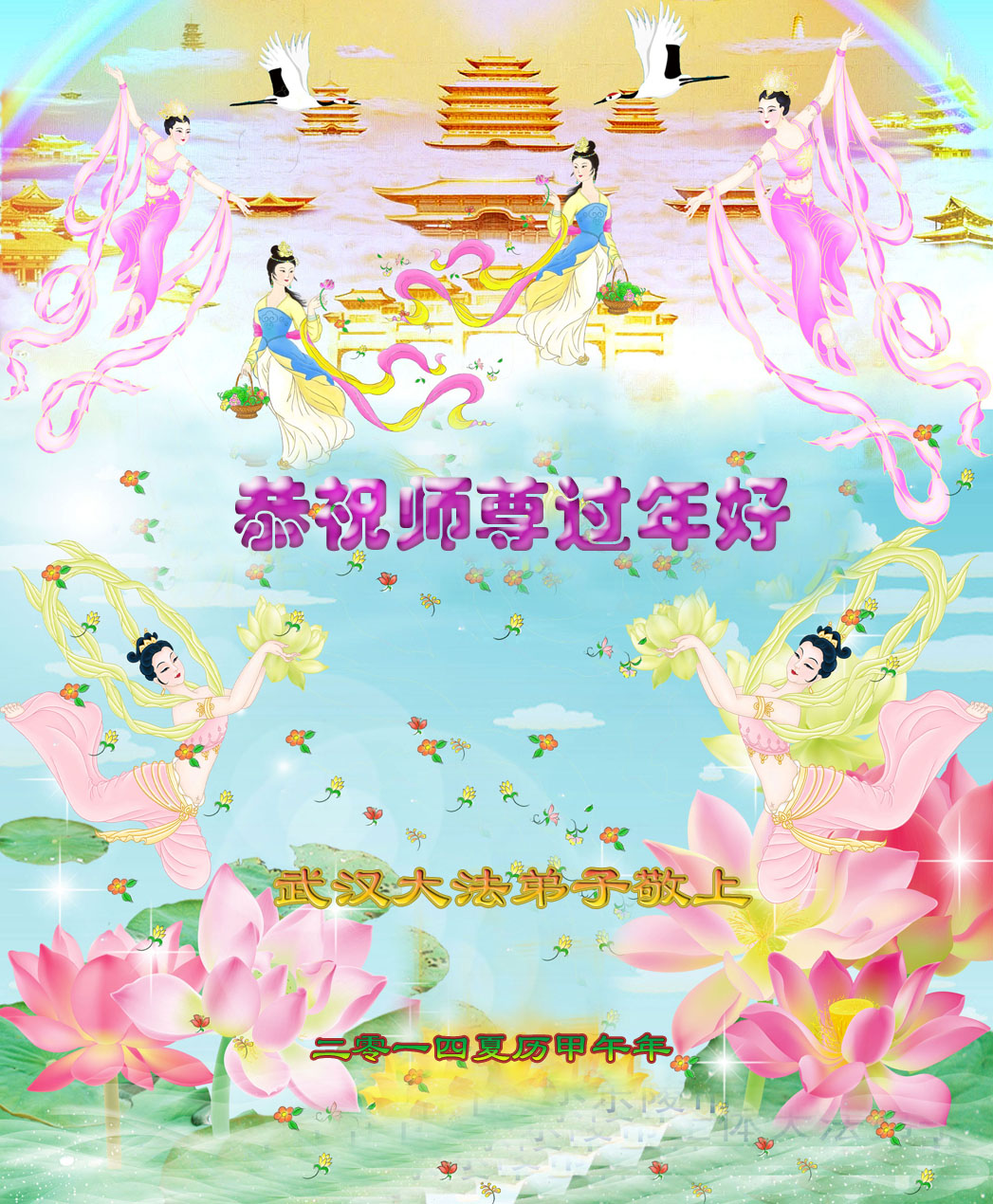 湖北省武汉大法弟子给慈悲伟大的师尊拜年!
