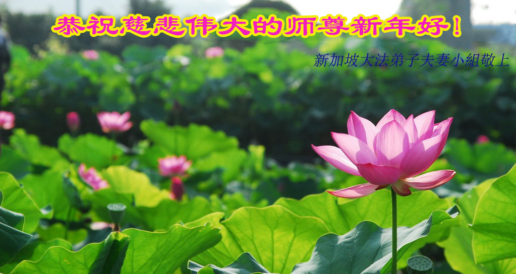 新加坡大法弟子夫妻小组恭祝慈悲偉大的师尊新年好!恭祝慈悲偉大的师尊新年好! 我们是80后的青年大法弟子。感謝师尊的慈悲救度,弟子在大法中明白了人生真諦,明白了人世为何苦,更明白了自己的責任。弟子一定会攜手共進,抓緊救人,助师正法,完成自己的史前大願,在新的一年更精進! 新加坡大法弟子夫妻小组