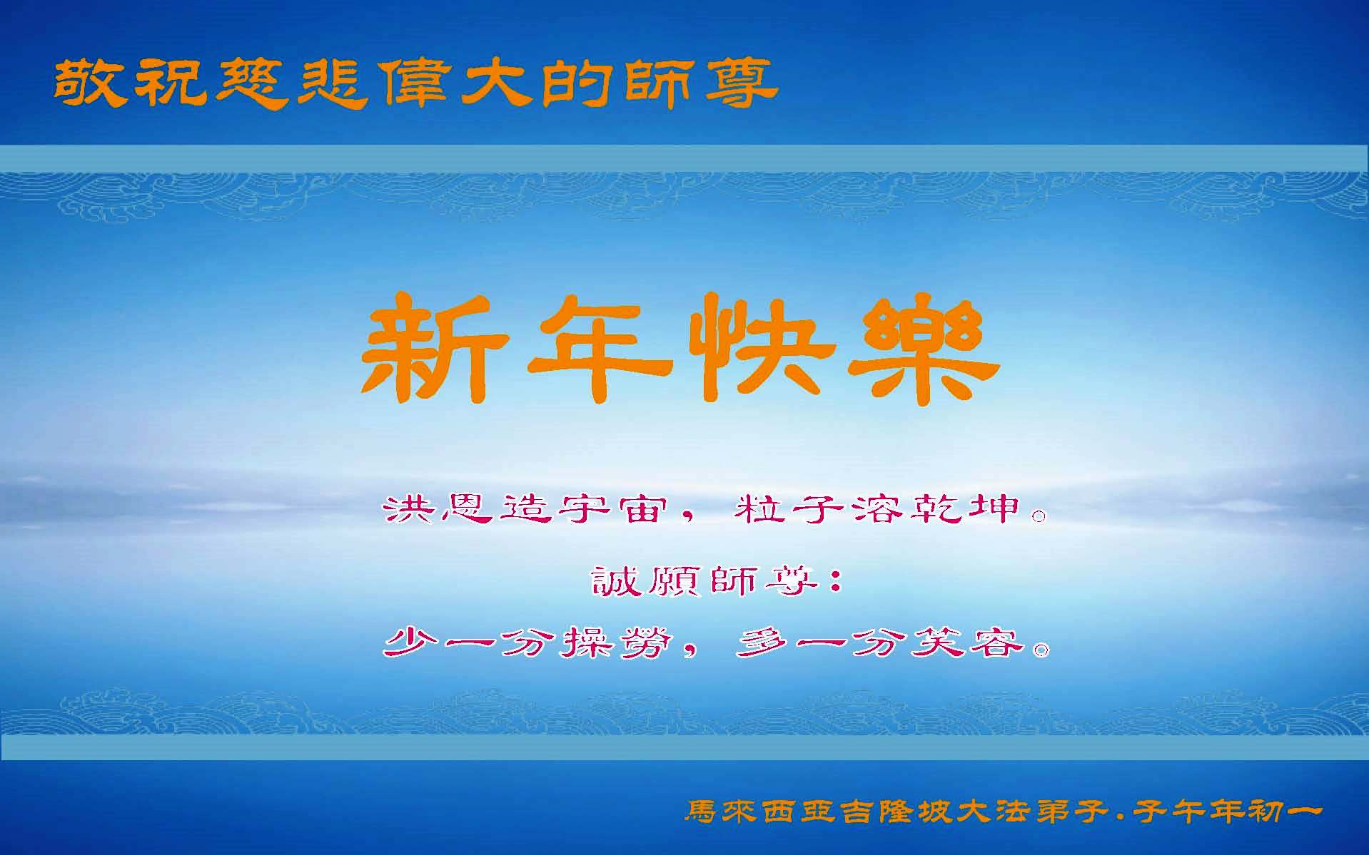 马来西亚吉隆坡大法弟子敬祝慈悲伟大的师尊新年快乐!佛恩化洪宇,弟子知使命。 马来西亚吉隆坡大法弟子敬上