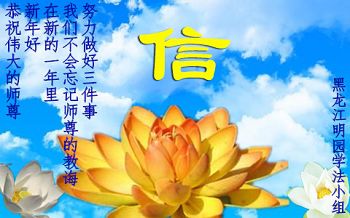 我们老俩口无法用语言来表示对师父的感激,只有多学法,快去执着,抓紧救人,完成自己的历史使命,不辜负师父的慈悲苦度。 河北故城大法弟子恭祝师父新年快乐!