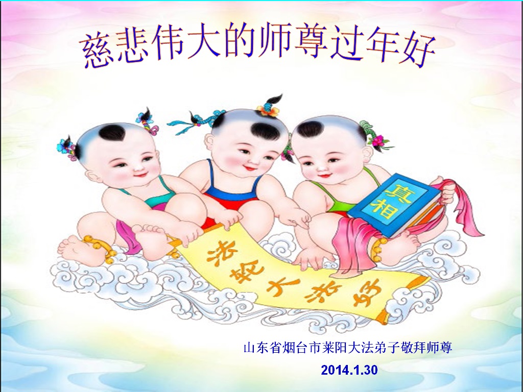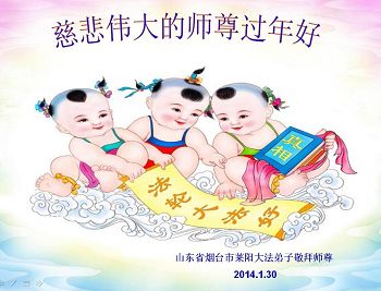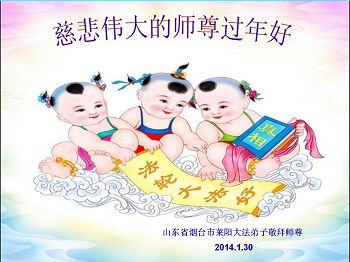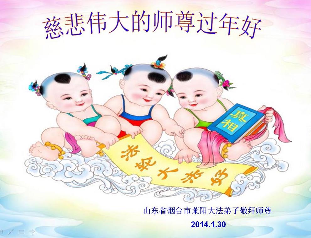 恭祝慈悲伟大的师尊过年好!山东省烟台市莱阳市大法弟子敬拜 2014.1.31 河南濮阳大法弟子祝师尊新年好!
