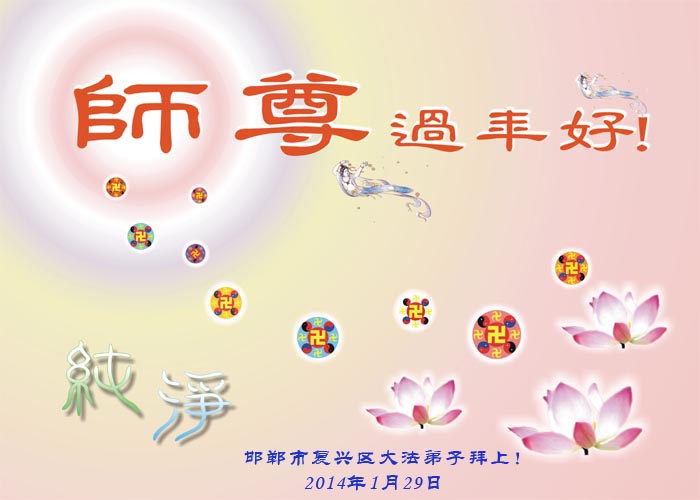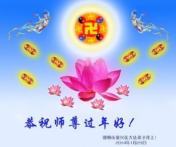 恭祝慈悲伟大的师尊过年好! 山东省烟台市莱阳市大法弟子敬拜 2014.1.31 河北保定大法弟子恭贺师父过年好!