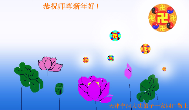天津宁河一大法弟子一家人恭祝师尊新年好!