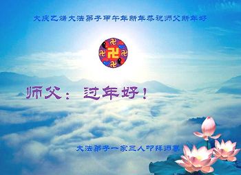 慈悲伟大的师父:弟子给您拜年! 弟子不忘您的苦心救度,抓紧时间做好三件事,早日随师还。 北京东城大法弟子叩拜 大法弟子一家三人恭祝师父新年好!