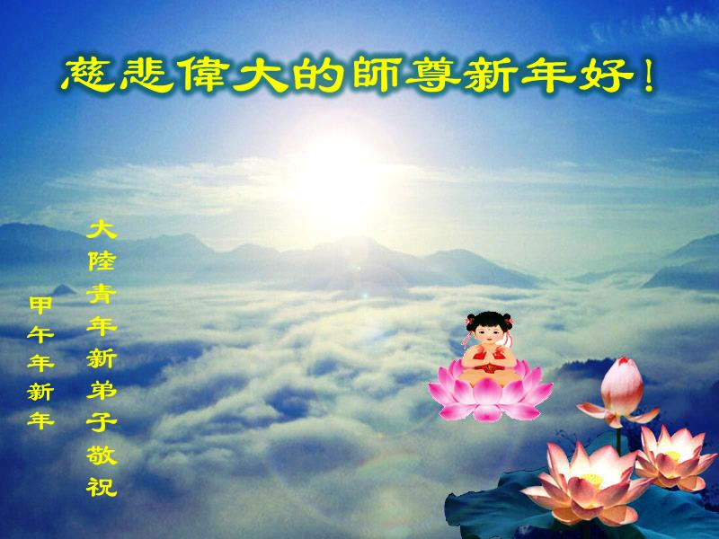 在新的一年,我要按照师父的要求,做好三件事,精進实修,助师正法,祝师父新年快乐! 大陆青年新弟子敬祝师尊新年好!