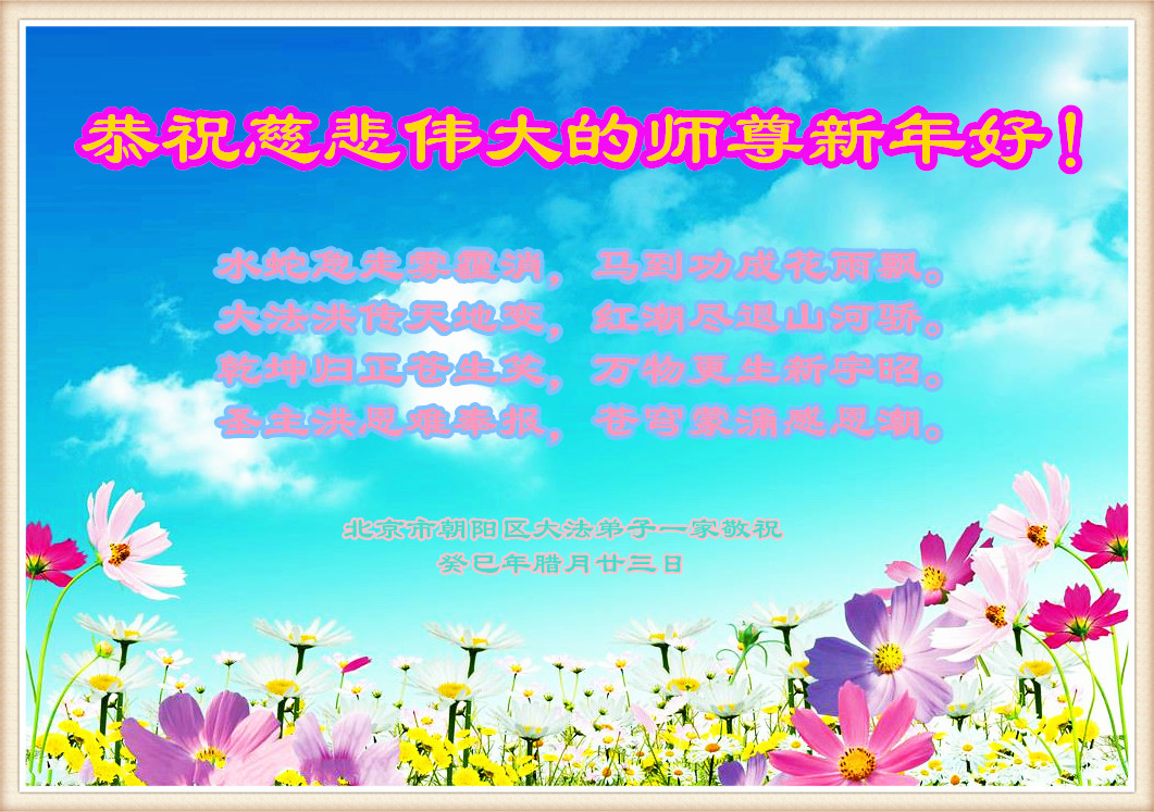 北京市朝阳区大法弟子一家敬祝慈悲伟大的师尊新年好!