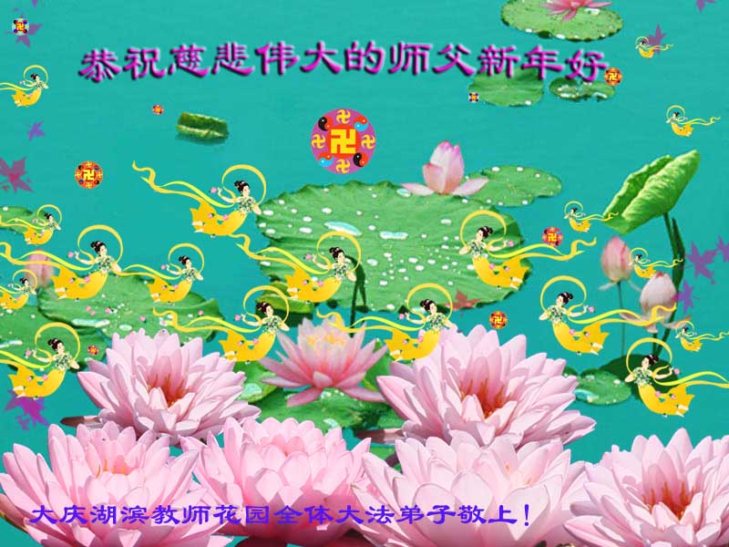 黑龙江省大庆湖滨教师花园全体大法弟子恭祝慈悲伟大的师父新年快乐!