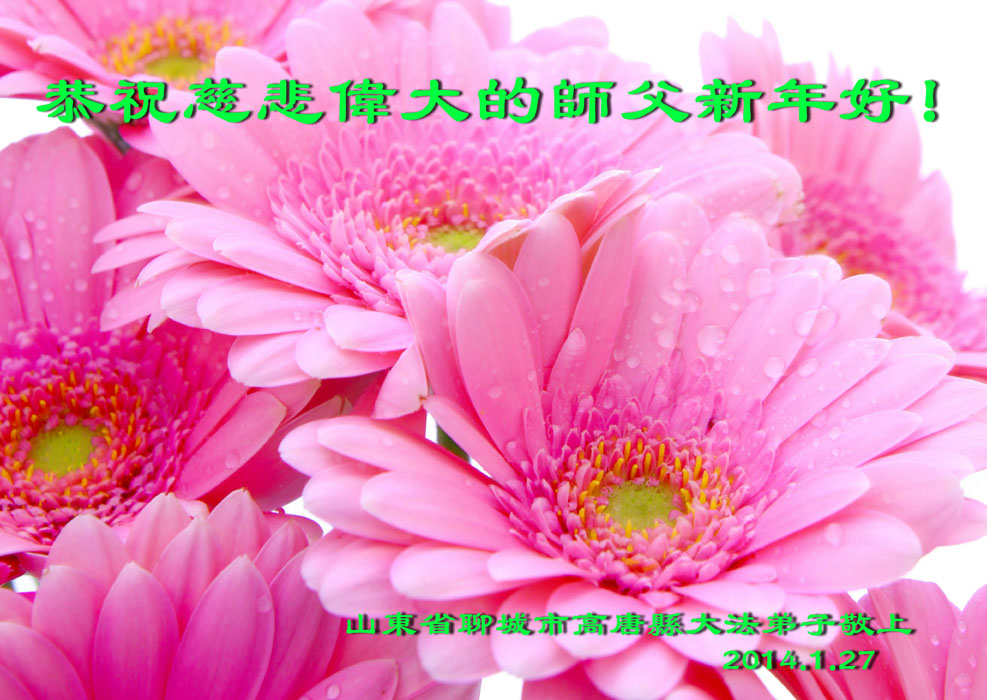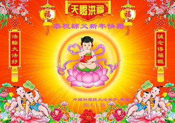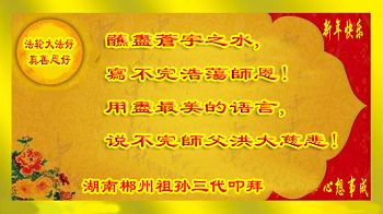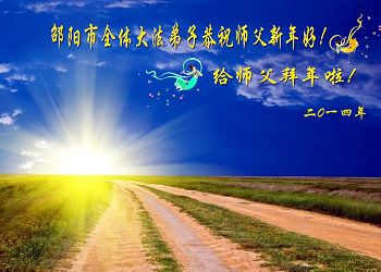 弟子向慈悲伟大的师父拜年了! 弟子跪拜恩师,师父过年好! 师父您辛苦了! 弟子在新的一年里加倍努力,多学法,学好法。做好三件事。完成师父交给弟子的使命!让师尊少操心。用实修回报师恩! 吉林省通化市大法弟子 2014年1月27日 大陆辽宁阜新学法小组全体大法弟子恭祝师父过年好