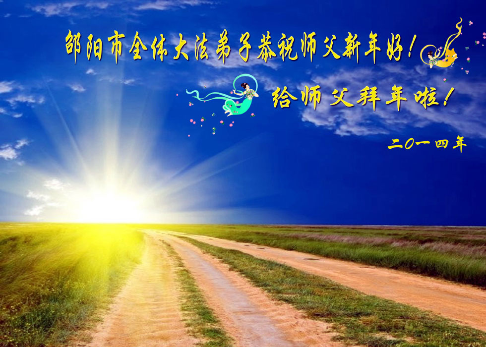 师父好!师父辛苦了!恭祝师父新年快乐! 随着师父正法洪势的推進和大法弟子的成熟,弟子们比任何时期都更加感到身负历史责任的重大和紧迫。在新的一年里,我们一定会把大法的美好带给更多的人。在一切事情的安排上,都要特别注重把证实法放在第一位,救更多的人。 黑龙江省绥化市北林区全体大法弟子敬上、合十 2014.1.28 湖南省邵阳地区大法弟子及家人向慈悲伟大的师尊拜年