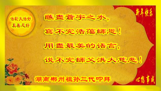邵阳地区大法弟子及家人向慈悲伟大的师尊拜年,千言万语凝成一句:感谢师尊! 师尊新年好!感谢您又一次救了我