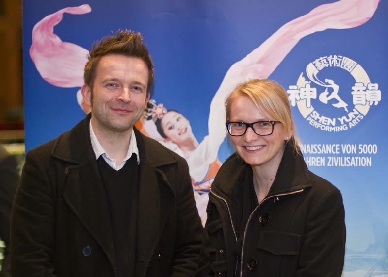 年轻企业家奇斯(Martin Thies)先生看了神韵演出他连连惊叹,原来中国是文化内涵如此丰富的国度,他说:“晚会再现了失落的中华传统文化。她展现出中国是这么一个文化内涵如此丰富的国度。她强烈的表现了超越凡世的东西,从演出中我们可以学到的东西太多了!”Thies表示通过今天的这种方式来认识中国,给他留下深刻的印象:“舞蹈传递给我们的是对生命的欢愉。而中国的传统在本土上却被打压。晚会把当今中国发生的事情和传统,和历史,和传说结合起来,把中国的文化,特别是精神内涵传递给了观众。晚会的歌词有着深邃的内涵,表达了那么多正面的东西。歌曲也非常好,无论是男中音,男高音或者是女高音都感人至深。” 曼德(Meindl)先生是劳斯莱斯(Rolls-Royce)德国分部航空部门的人事主管。他和太太一起欣赏了演出后,表示:“这个演出色彩绚丽,音乐曼妙,中国乐器和西方乐器结合。每个人都应该来看,因为这对我们来讲,是个崭新的世界。”“我认为,神韵的确重新振兴了失去的文化。在文化大革命期间,很多东西都被毁坏了。现在有这样一个机会,可以将文化承传下来,甚至有朝一日还可以回到中国。我希望是这样。”  劳斯莱斯主管Meindl夫妇在柏林波茨坦广场剧院观看了神韵演出。 |