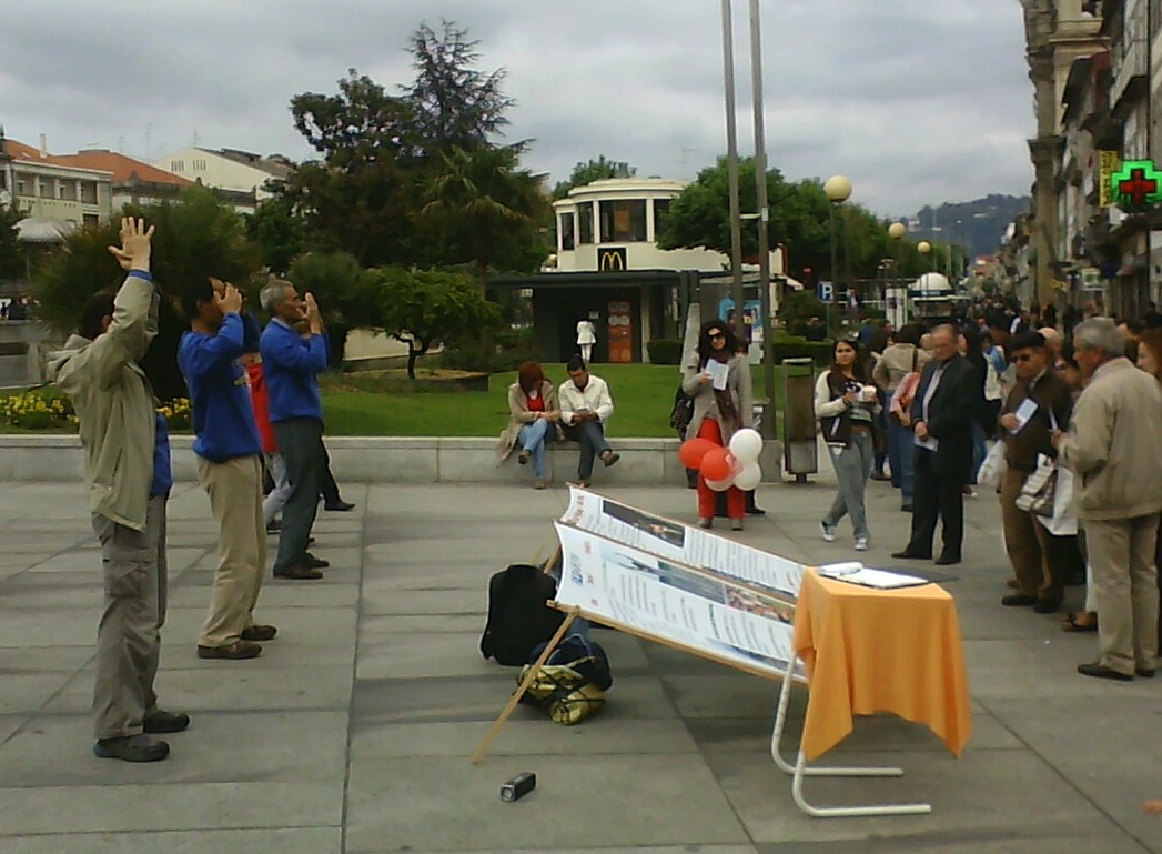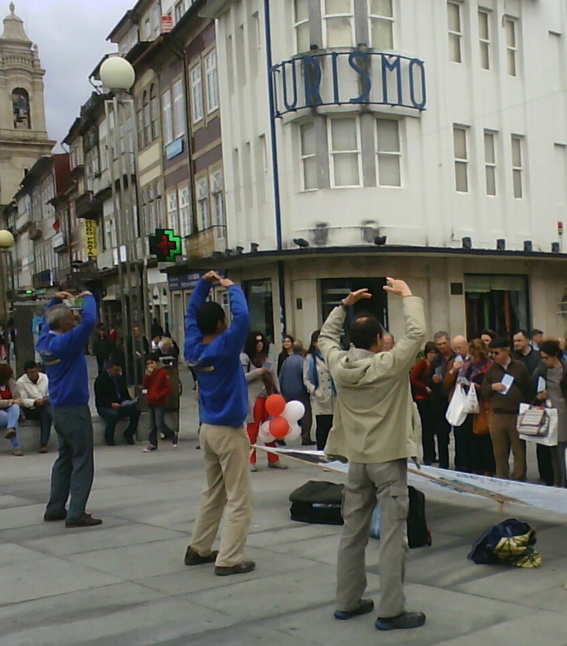 法轮功学员首次来到布拉加市,吸引大批民众。
