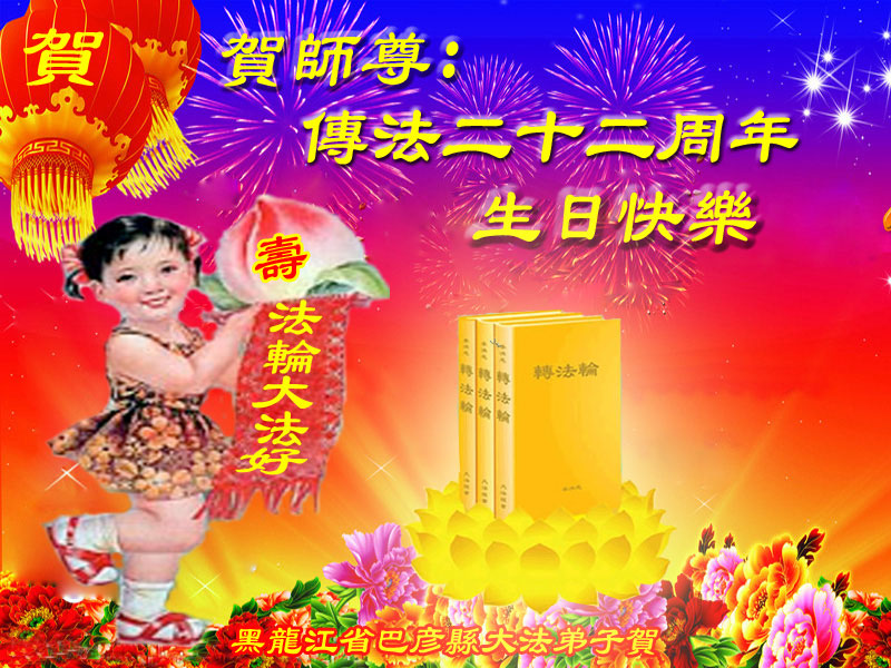 黑龙江省哈尔滨市巴彦县大法弟子祝师尊生日快乐!庆祝法轮大法洪传二十二周年!