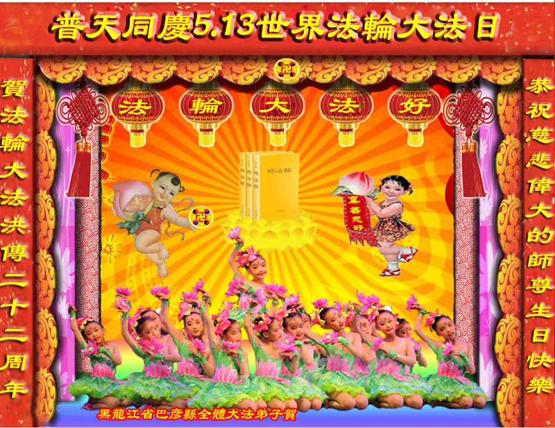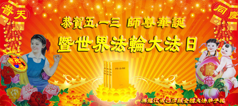 黑龙江省哈尔滨市巴彦县全体大法弟子恭贺五•一三师尊华诞暨世界法轮大法日!