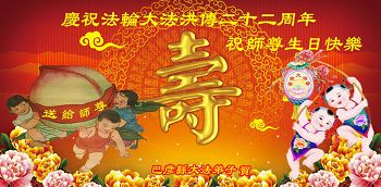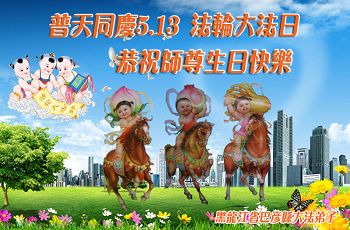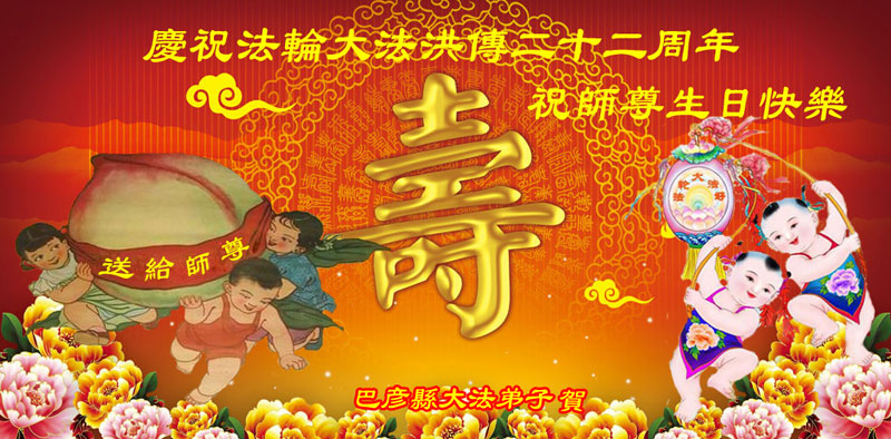 【明慧网二零一四年五月十日】 黑龙江省哈尔滨市巴彦县大法弟子恭贺师尊传法二十二周年!恭贺师尊生日快乐!