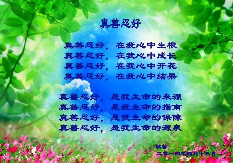 愿我们全球大法弟子能够更加正念正行,修口向内找,互相圆容,整体配合,把师尊赋予我们的神圣的三件事做的更好。