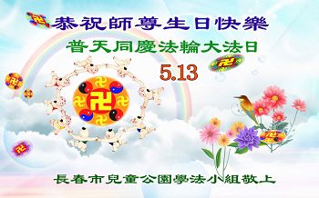 吉林省长春大法弟子恭祝师尊生日快乐,庆贺大法洪传二十二周年!