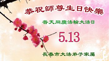 吉林省长春大法弟子恭祝师尊华诞,祝慈悲伟大的师父生日快乐!同贺世界法轮大法日!