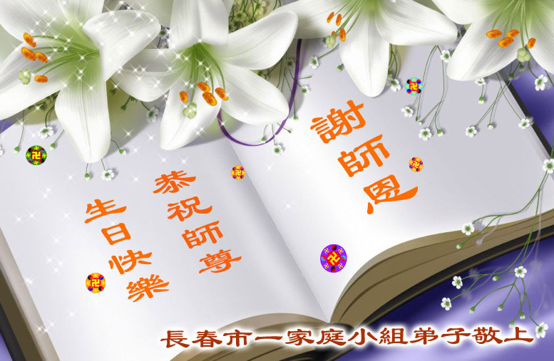 吉林省长春一家庭学法小组大法弟子恭祝师尊生日快乐!